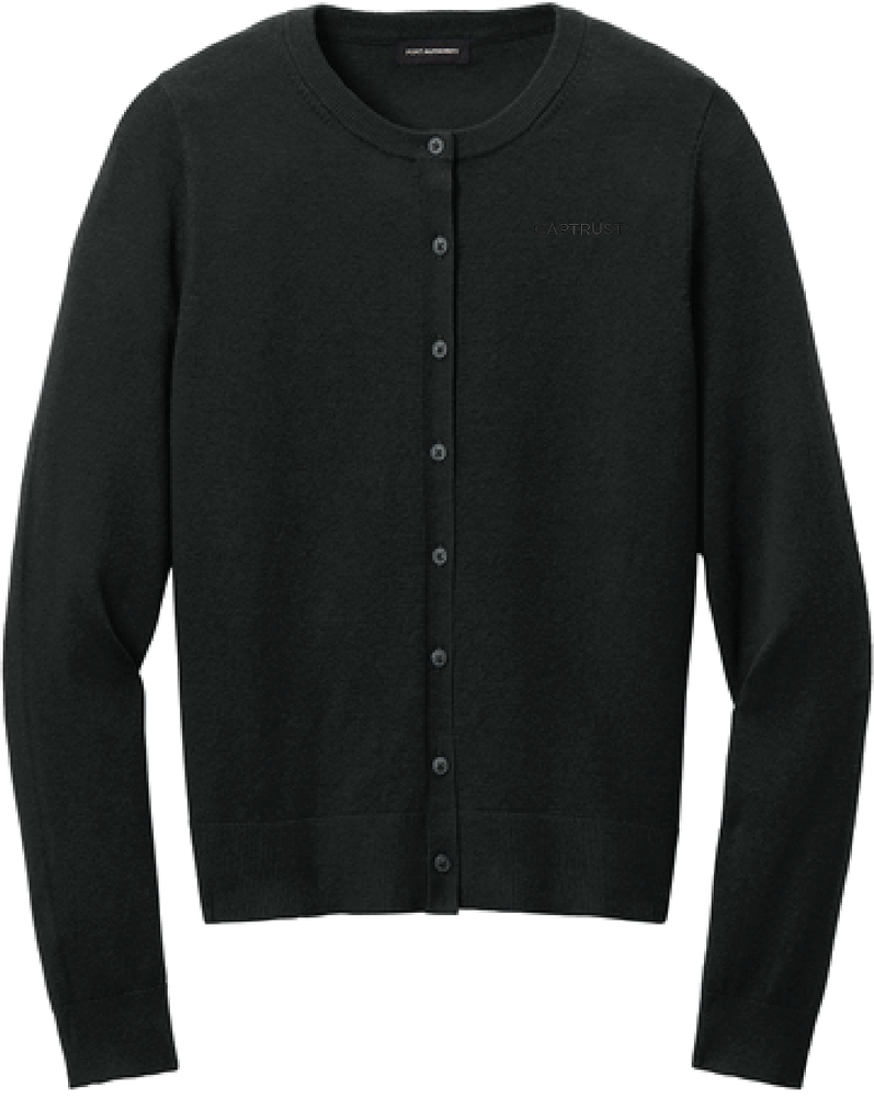 Blending professionalism with supreme comfort, this beautiful tri-blend sweater is an exceptional addition to any work wardrobe. 56/29/15 cotton/nylon/acrylic. Fully-fashioned seams. Machine washable. 1x1 rib knit collar, cuffs and hem. Dyed-to-match faux horn buttons. Hits at the hip.
